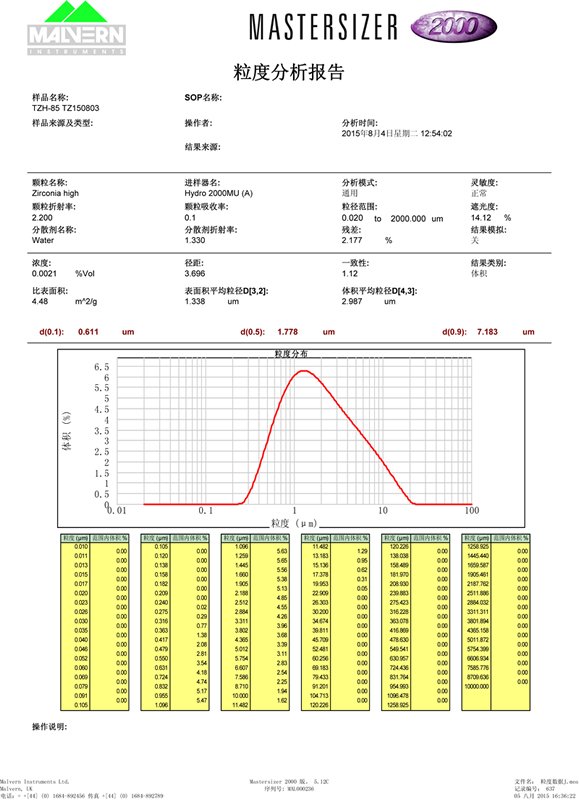 产品名称: 纳米氢氧化锆 执行标准:企业标准
